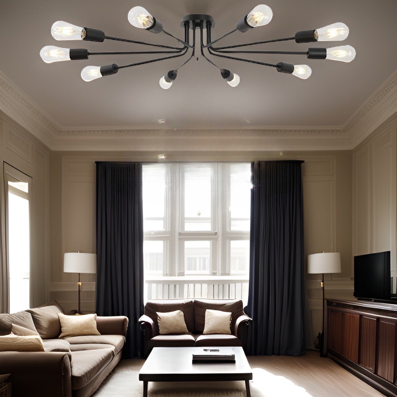 10 Light Sputnik Chandelier Black Ceiling Light Semi Flush Mount Light Ceiling Lamp