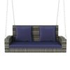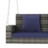 Home > 2-Person Wicker Hanging Porch Swing with Chains, Cushion, Pillow, Rattan Swing Bench for Garden, Backyard, Pond.