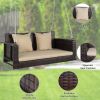 49in Brown Gradient Rattan Beige Cushion Rattan Swing Chair(Swing frames not included)