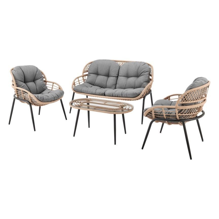 Home > Belize 4-Piece PE Natural Rattan Outdoor Grey Cushions Conversation Set, Large