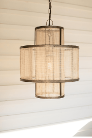 Antique Turquoise Pendant Light With Glass And Wire Cage 13"D X 19"T