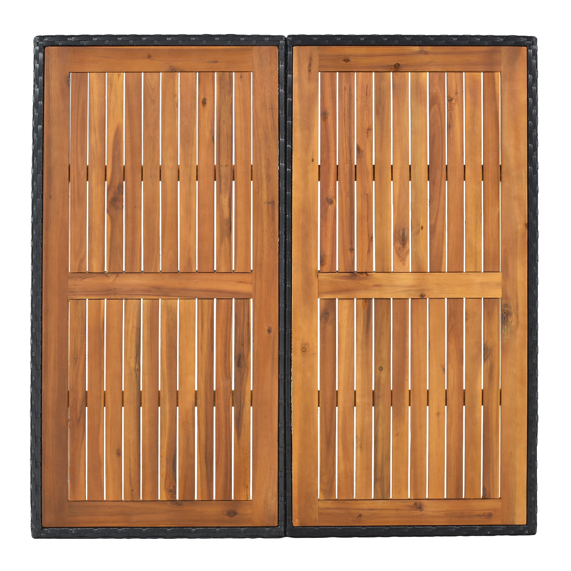 Durable & BeautifulConstructed with durable powder-coated steel frames and woven PE rattan to make the table and chairs durable enough for long time use. Slatted acacia wood table top offers extra charming looking which decorates your home with more elegance.Perfectly highlights your patio or poolside décor.
