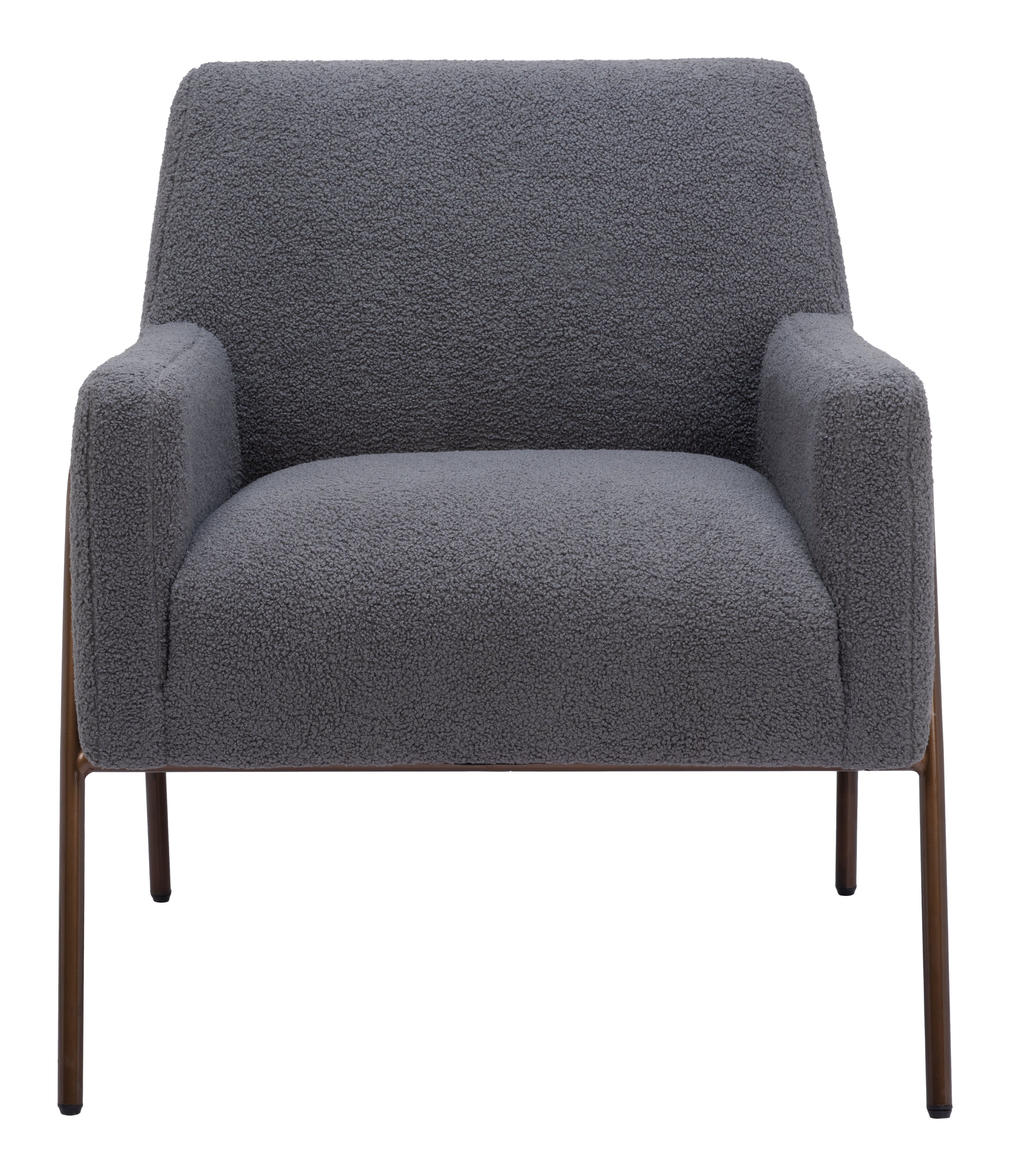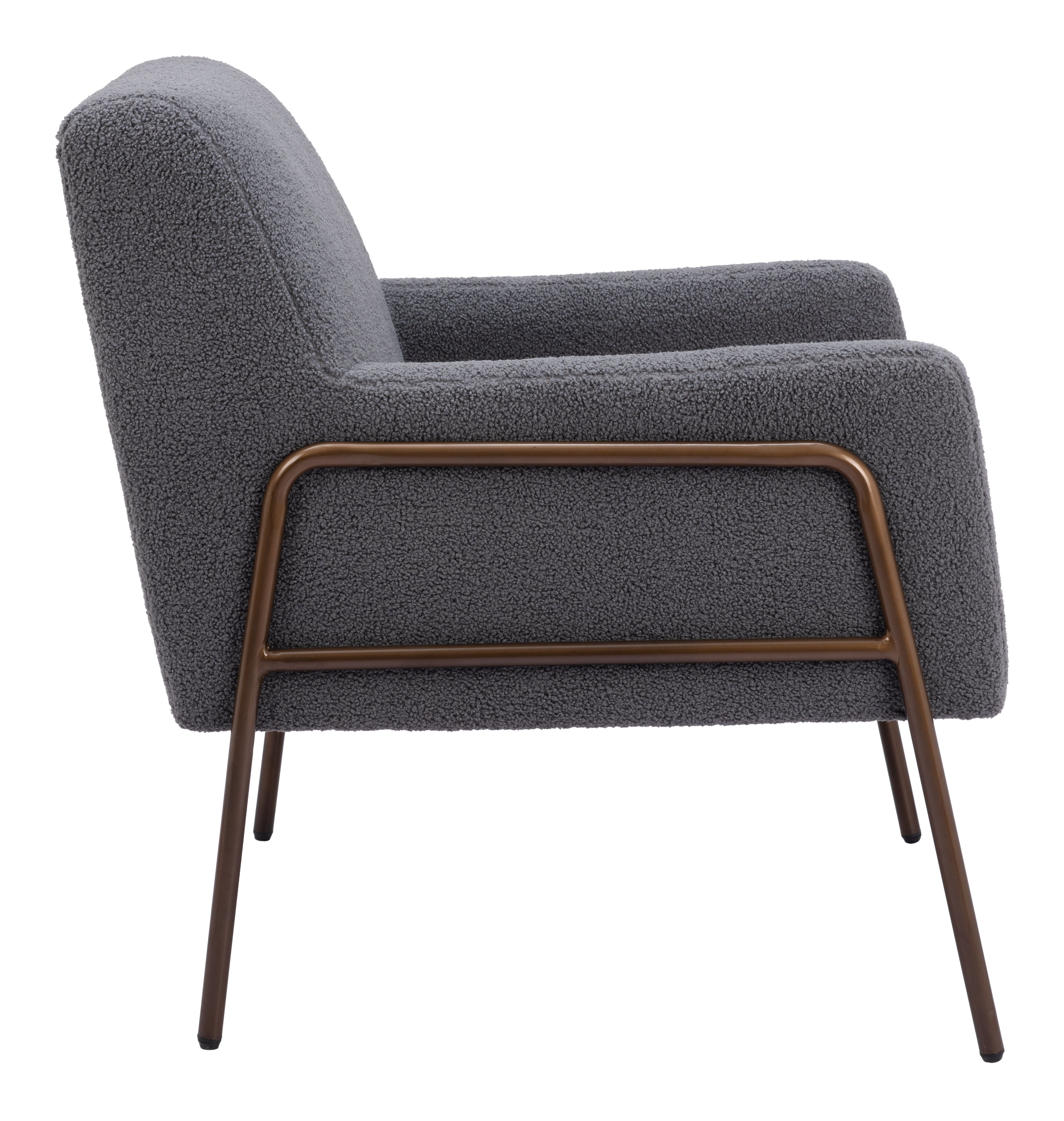 This chair is wrapped in a shearling style polyester and a powder coated steel frame. This chair has a soft modern look with plush deco and boho lines. It looks great in any space, hotel lobby, spacious loft, or glam bedroom.