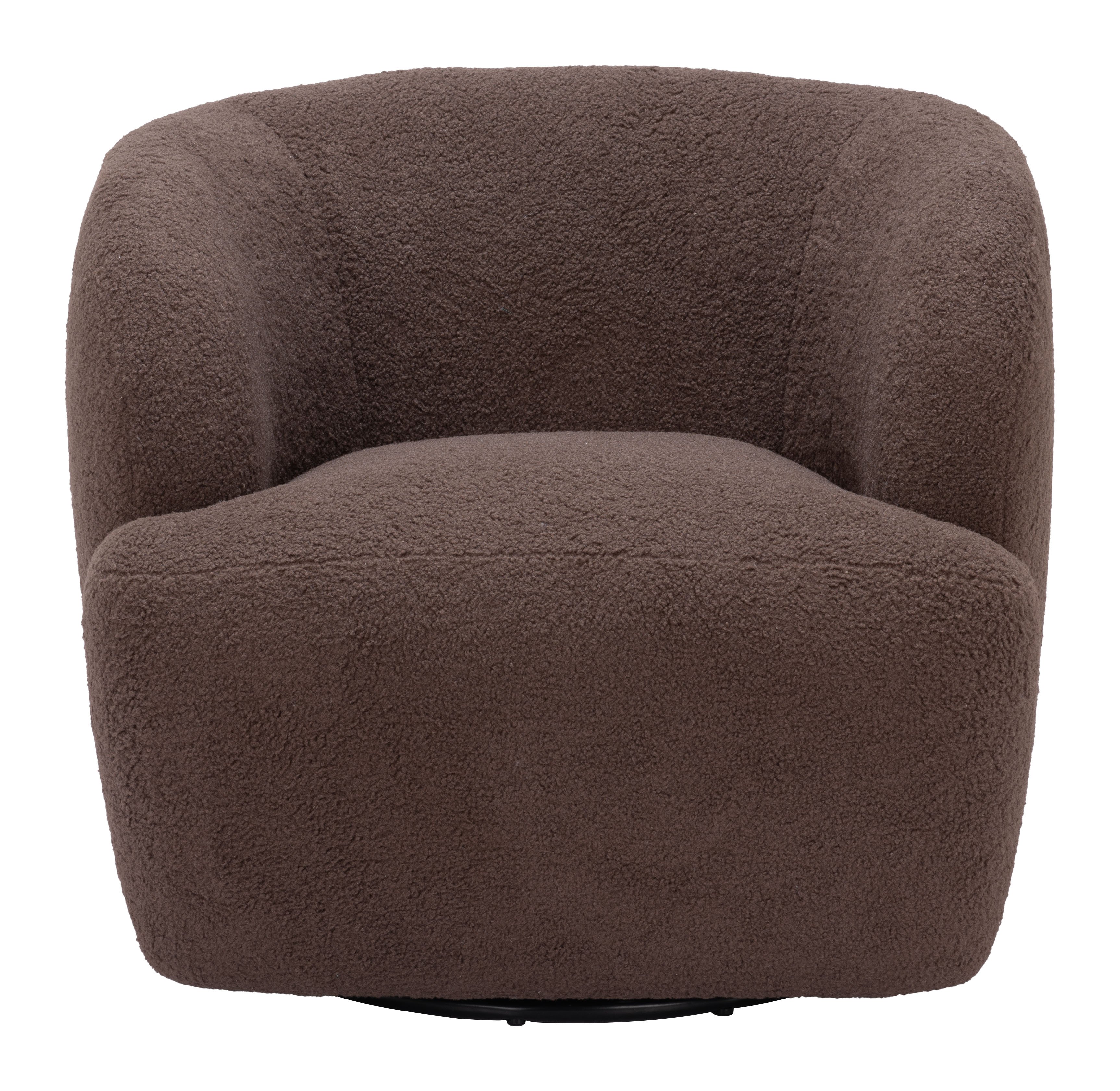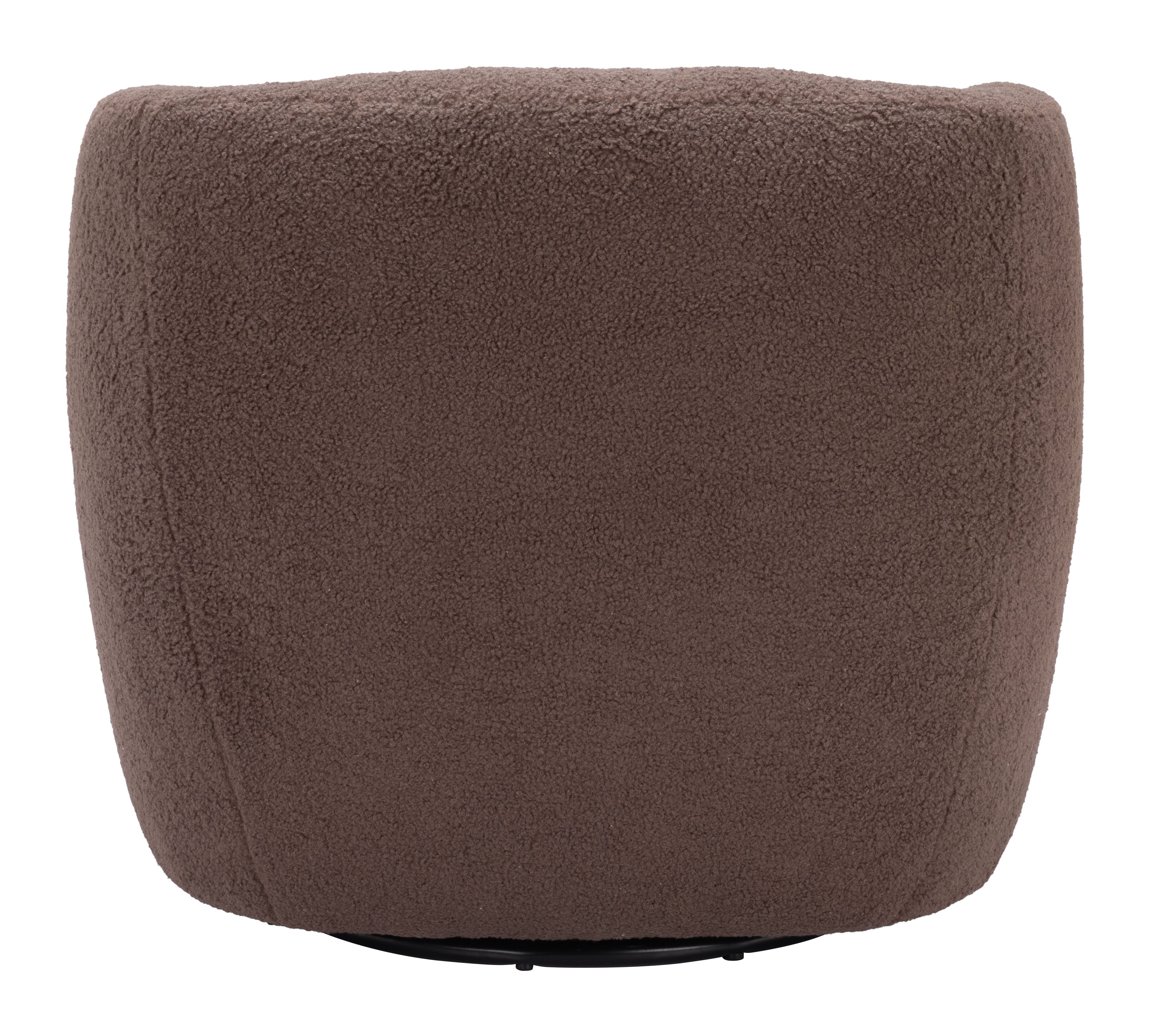 This chair is wrapped in a shearling-style polyester and a swivel base. This chair has a soft modern look with plush deco and boho lines. It looks great in any space, hotel lobby, spacious loft, or glam bedroom.