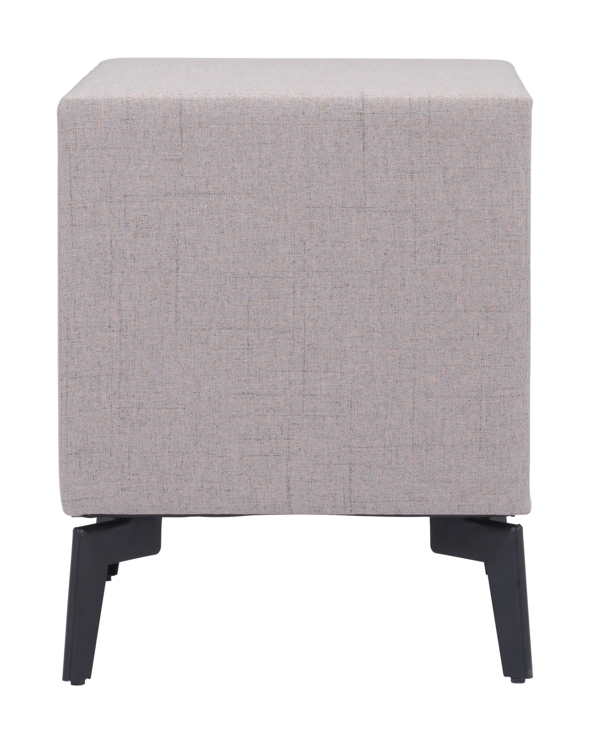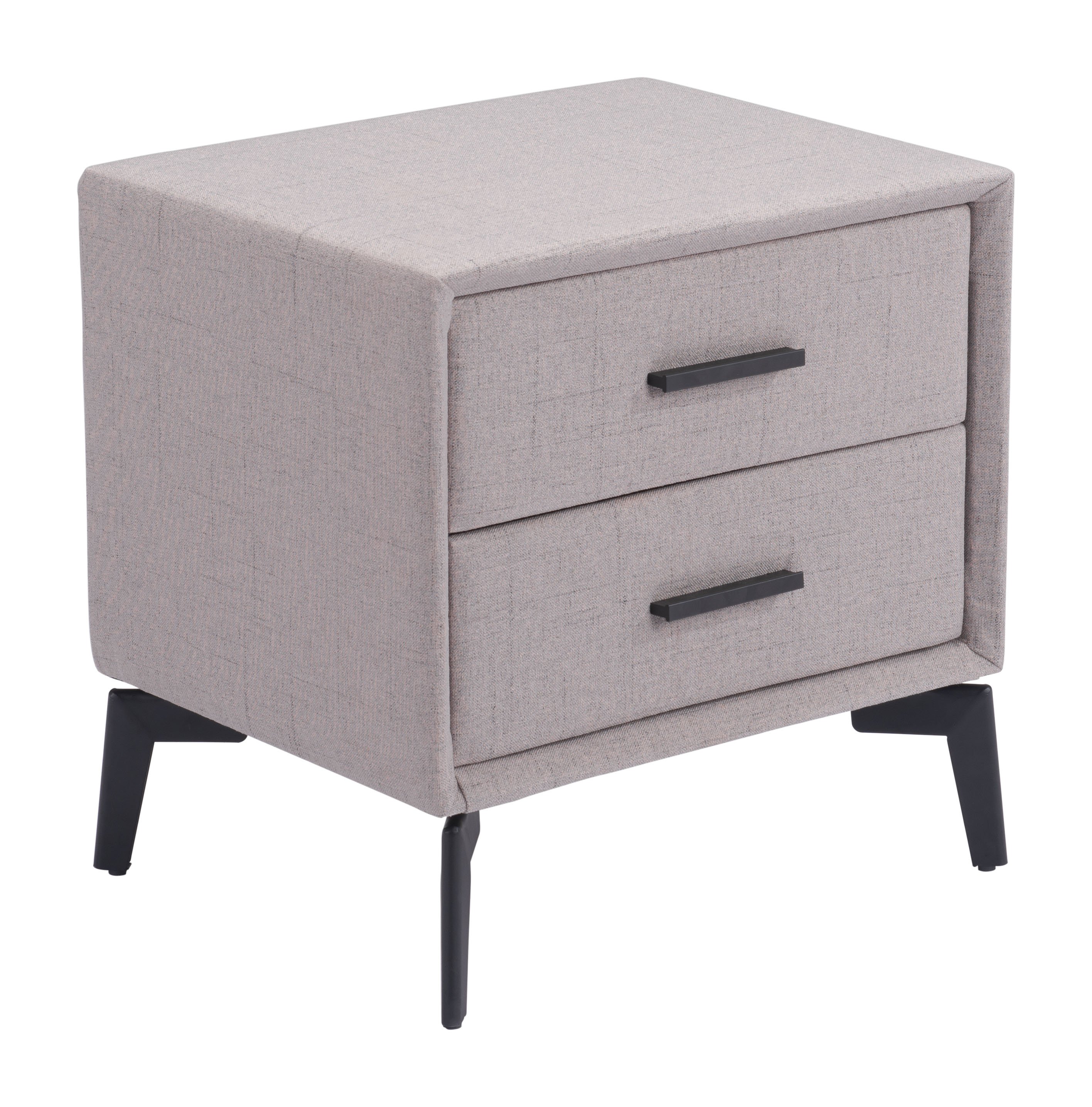 This side table has an MDF and plywood frame and two drawers wrapped in polyester fabric and sits on top of a powder coated steel frame and looks great in any space, modern, urban, glam, or boho chic.
