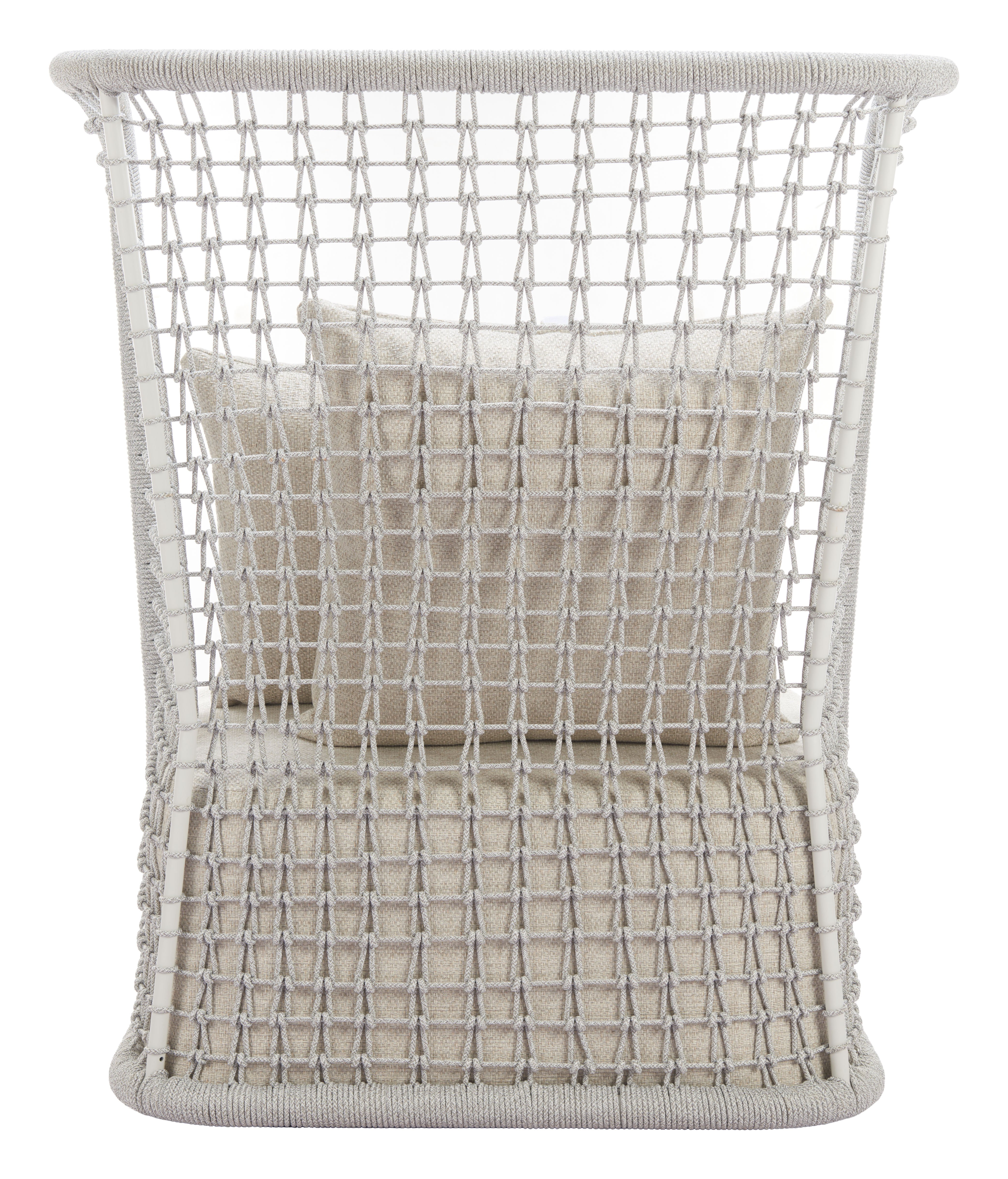 The Hudu Accent Chair is wrapped in olefin acrylic fabric with an outdoor foam seat. With its modern shape and high weaved back, it adds a sense of style to any indoor or outdoor space.