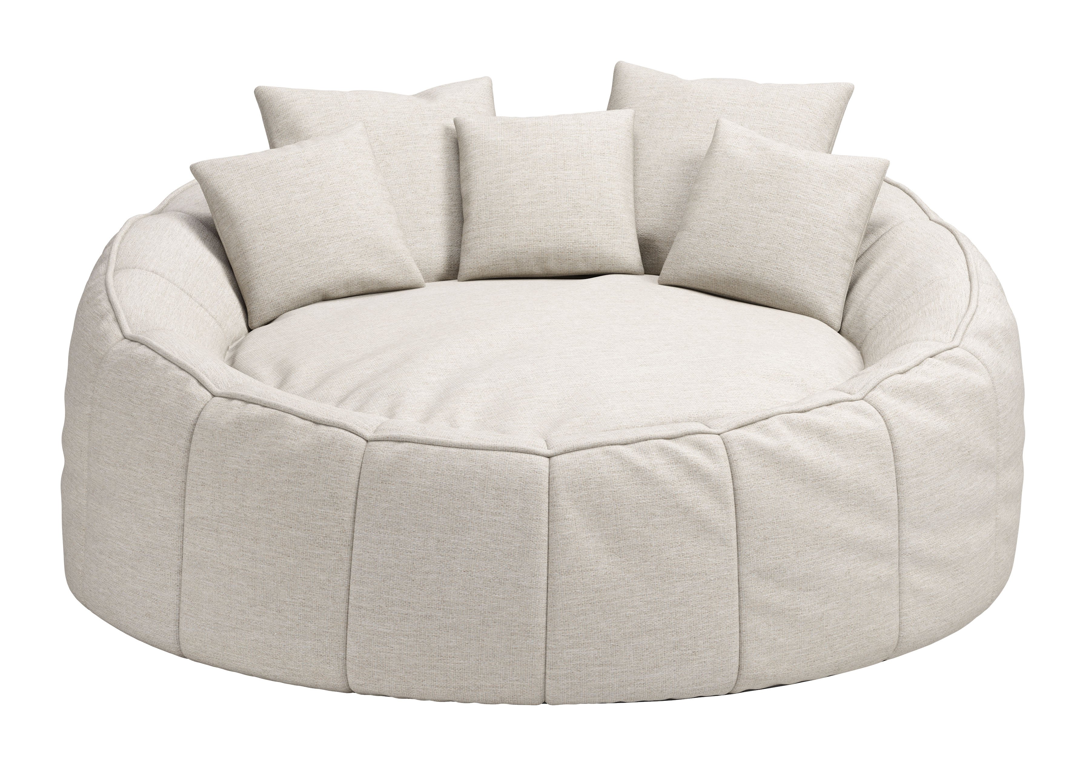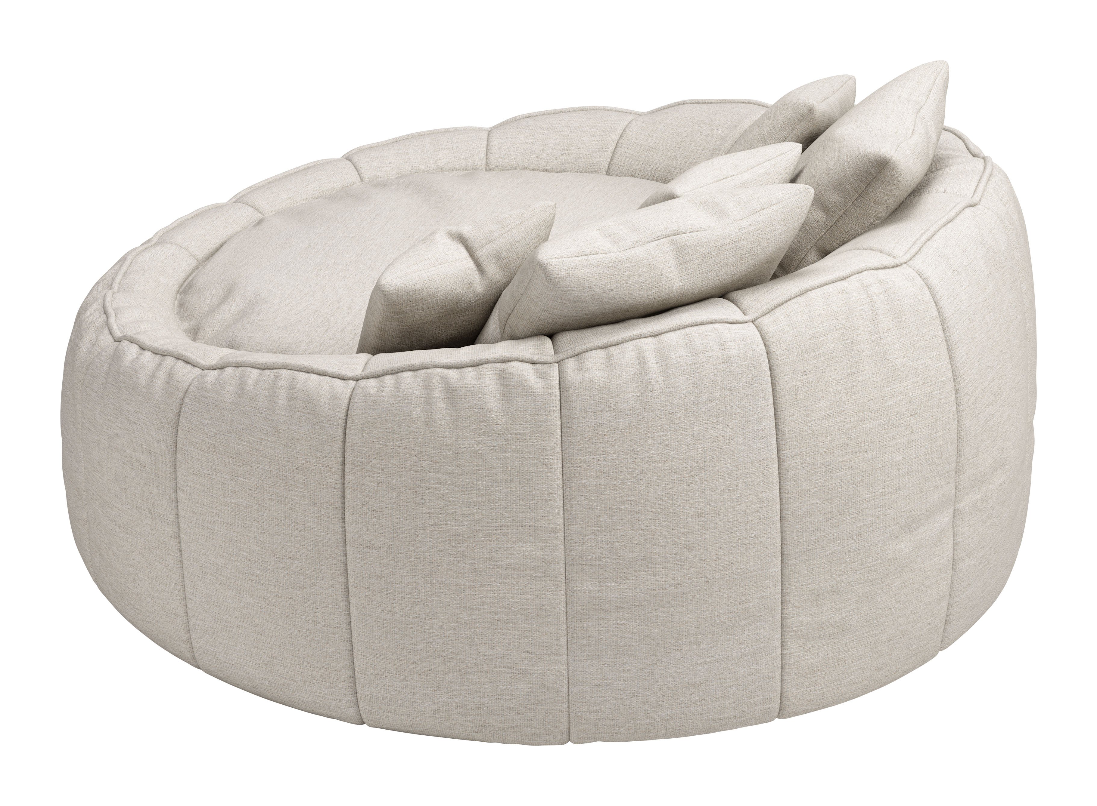 Experience ultimate outdoor relaxation with the Kime Outdoor Daybed. Covered in durable Olefin fabric, this luxurious daybed is filled with expanded poly beans that are both antimicrobial and weather-resistant, ensuring long-lasting comfort and hygiene. Its plush, round design provides a cozy retreat for lounging in style, perfect for any outdoor setting. Elevate your outdoor space with the Kime Daybed, where elegance meets practicality.