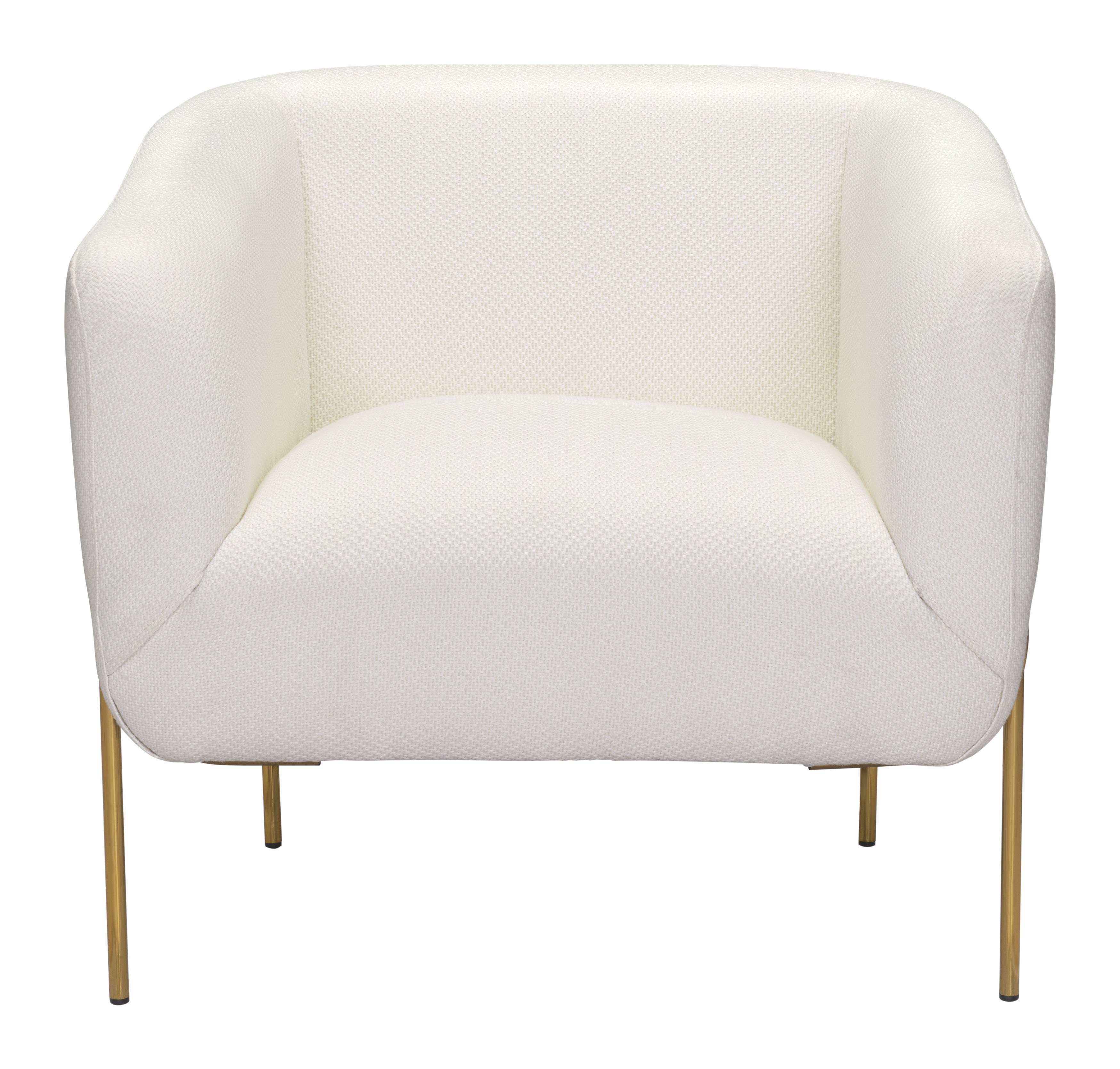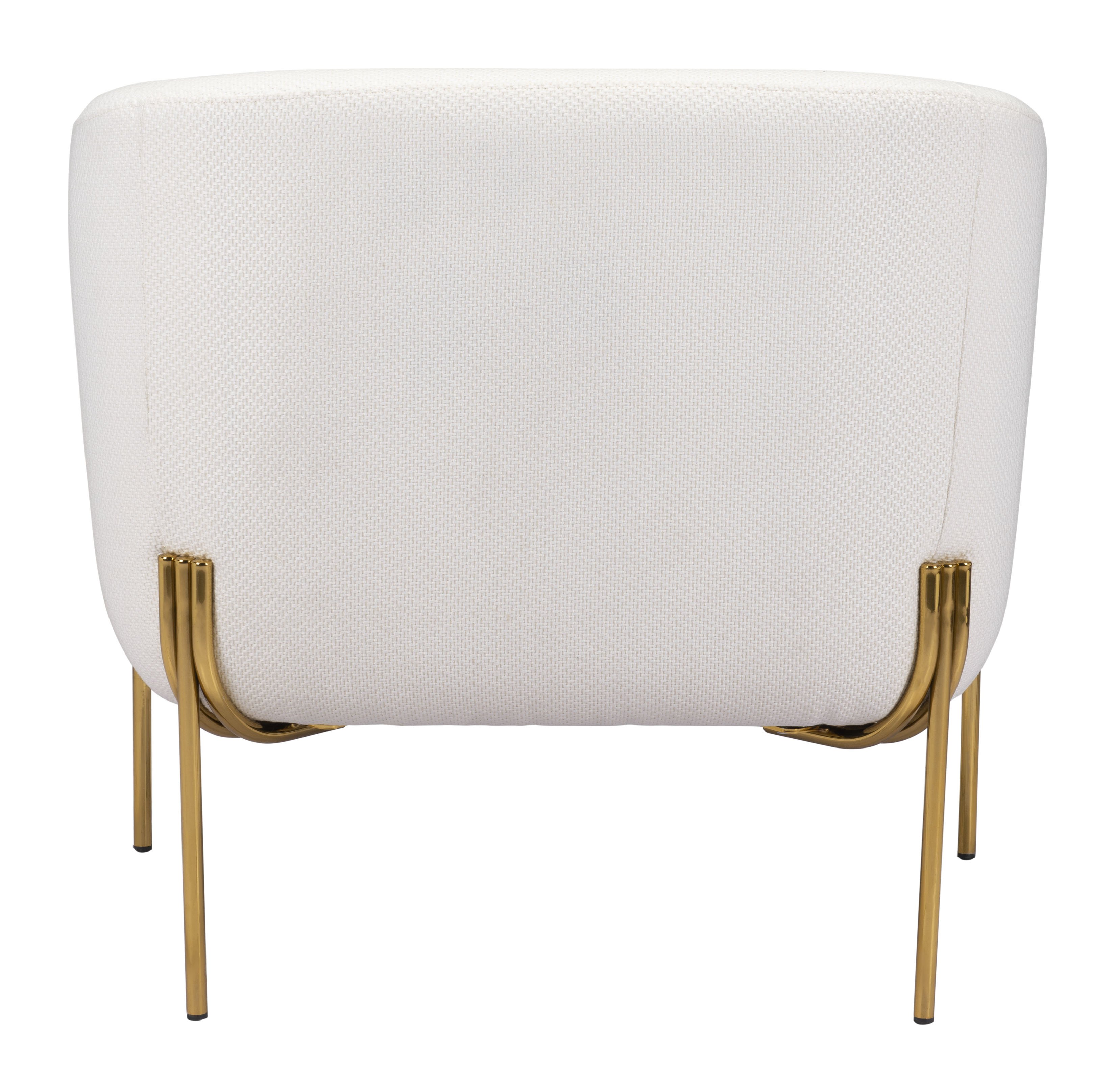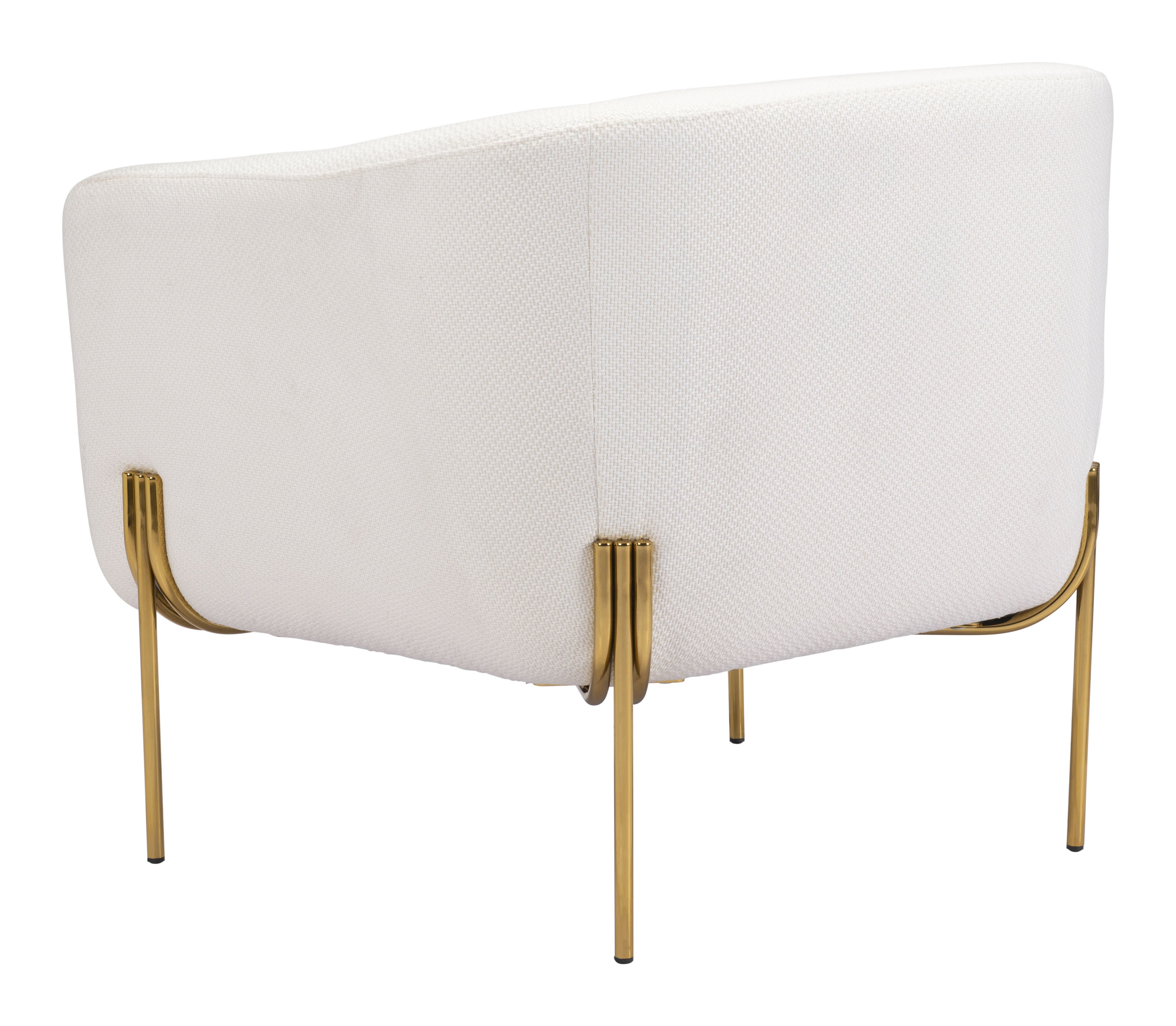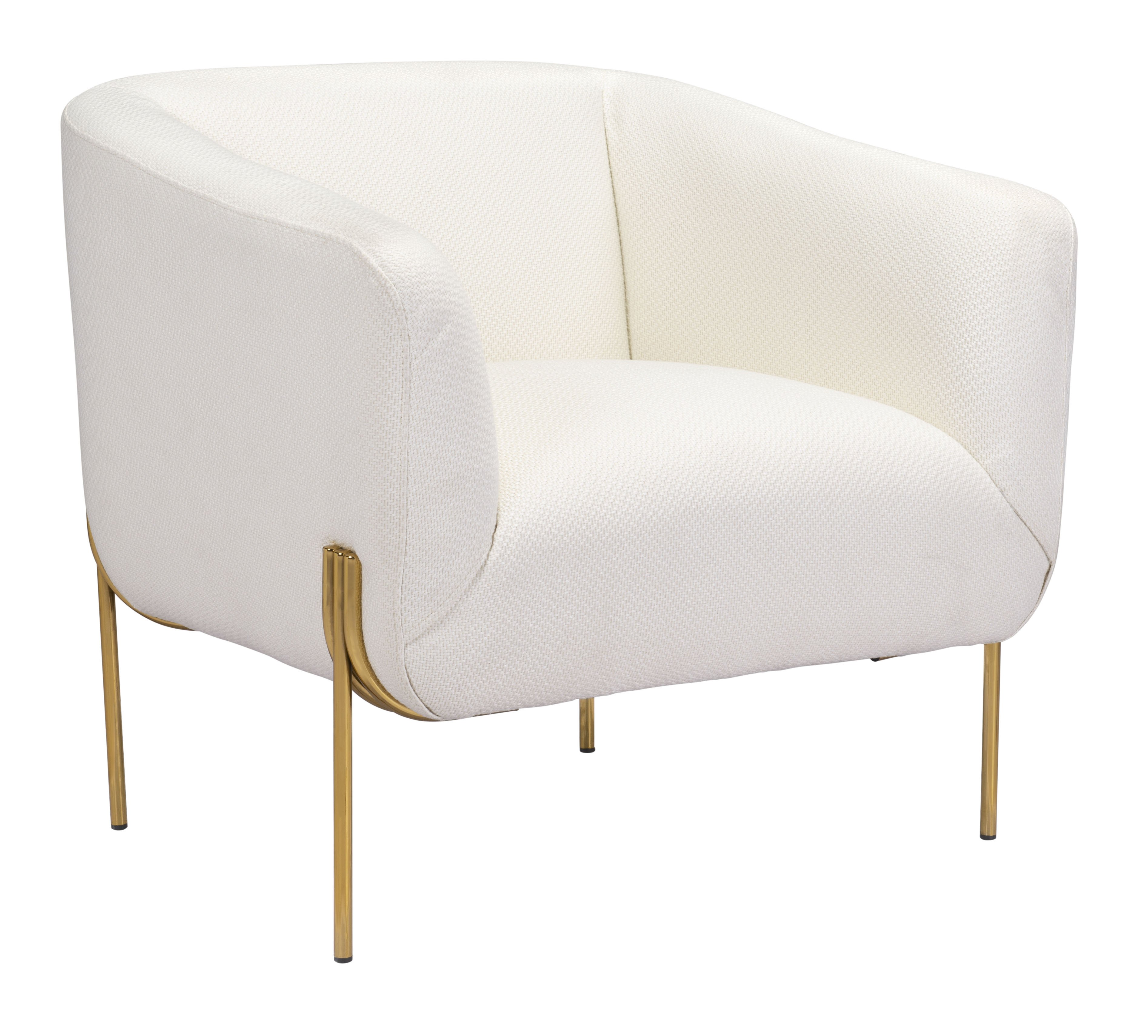 Poised for comfort, this cushy lounge chair is generous in scale and chic. Its lux gold frame keeps a low profile to highlight the mod vibe of the chair when placed in your living room or bedroom. Wrapped in soft ivory fabric, it is the perfect complement for your modern space.