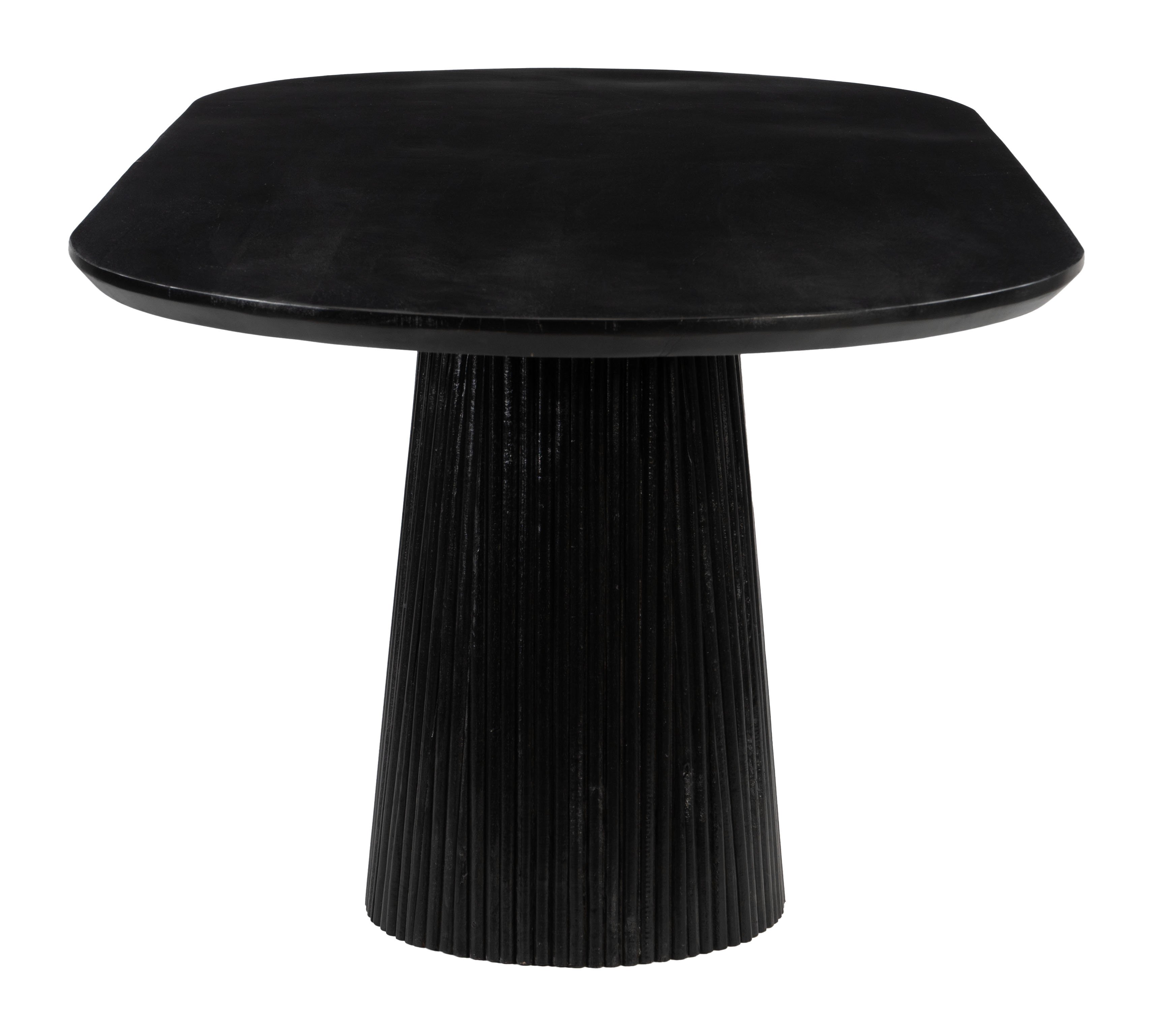 The Sulco Dining Table in Black is a bold, modern piece made from mango wood and MDF. Its sleek black finish brings a contemporary touch to indoor dining spaces, making it ideal for residential or hospitality use. This table is both durable and stylish, serving as a perfect centerpiece for dining rooms.