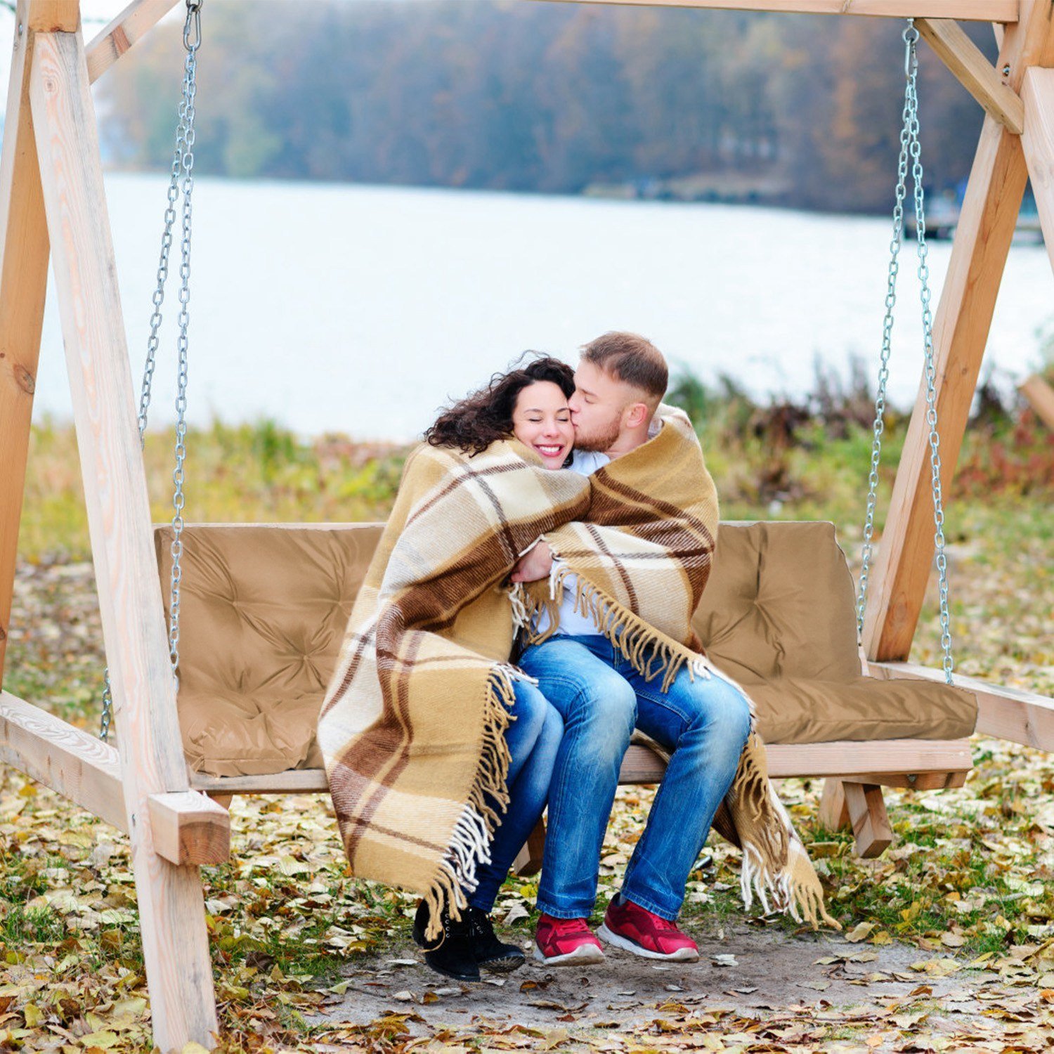 *Friendly Reminder*:The swing bench cushion is delivered in vacuum compressed package. After unpacking,please patiently place it for 3-7 days,or put it in the dryer for 15 minutes to make it return its fluffy shape.