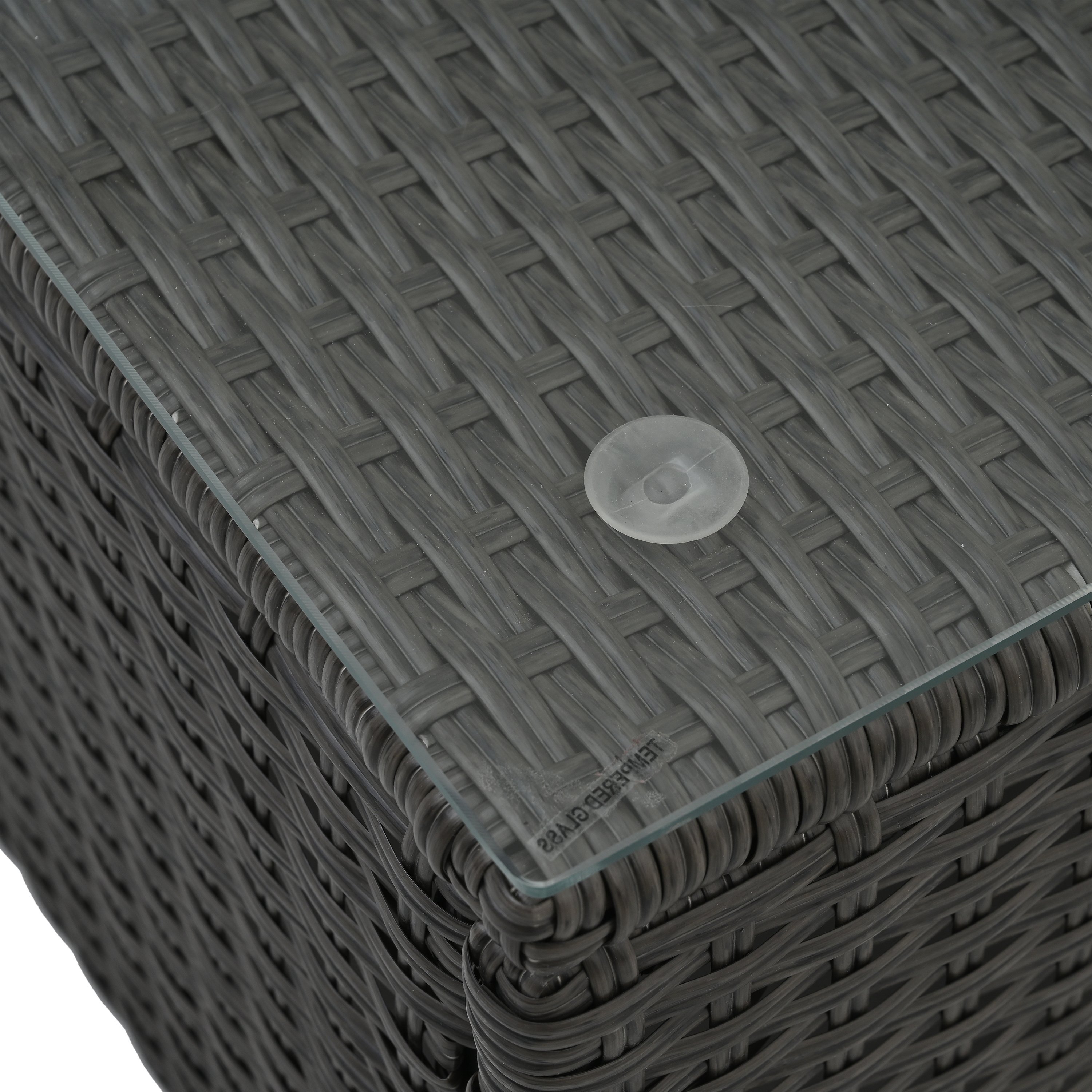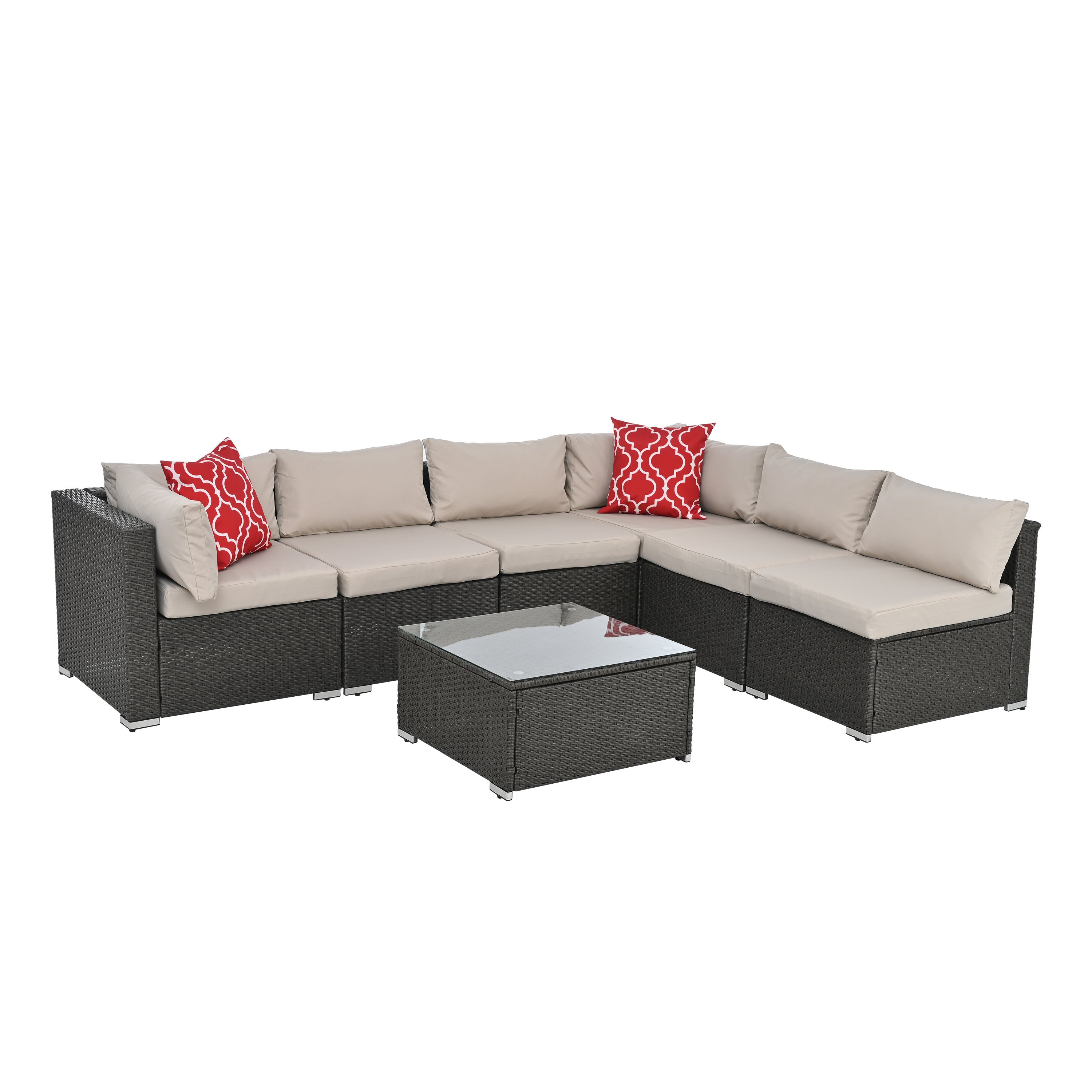 Functional&Conveniet: 6 seperate seats with one tempered glass table, gives you more imagination for how to gothering, with buckle to lock the seats, you may make the sofa seats to be fixed together at what combination you want. One square table will be a central point gives you very good support for fetching snacks or coffees not far from every side.