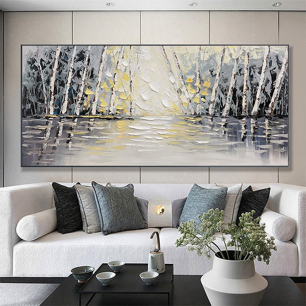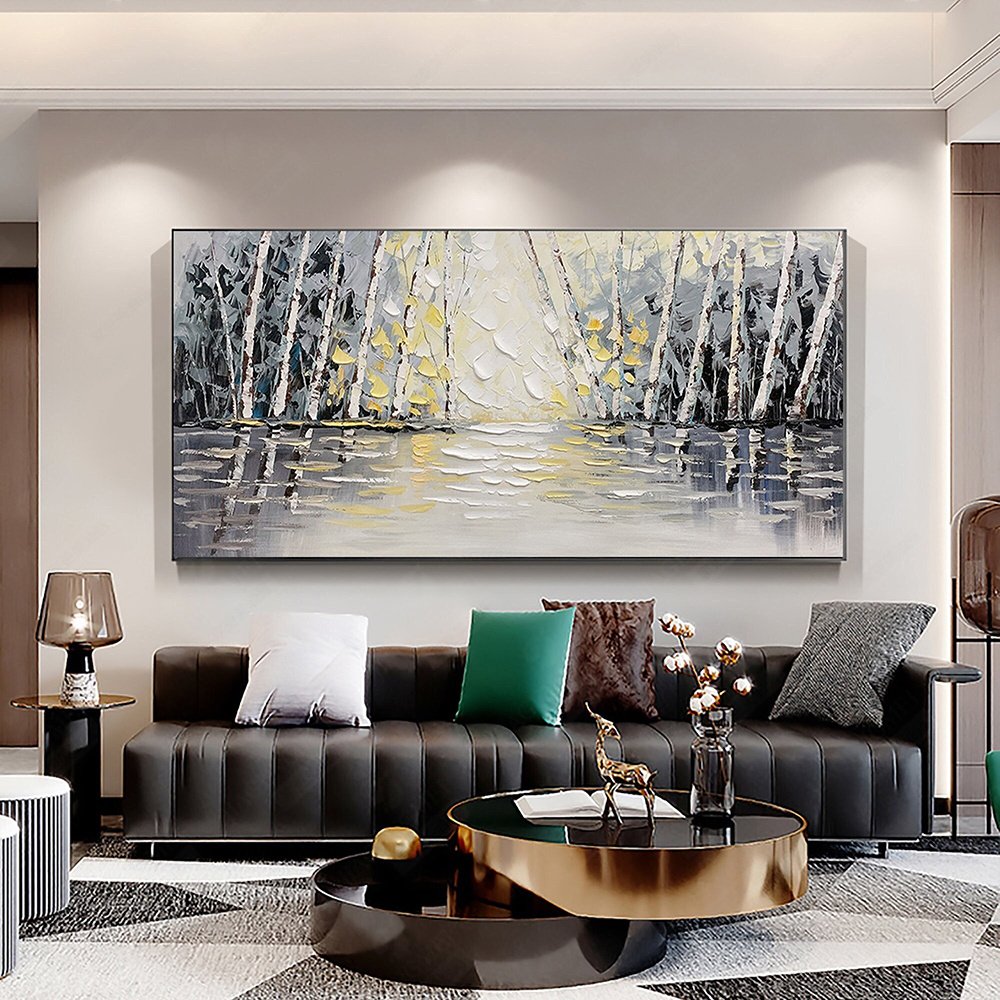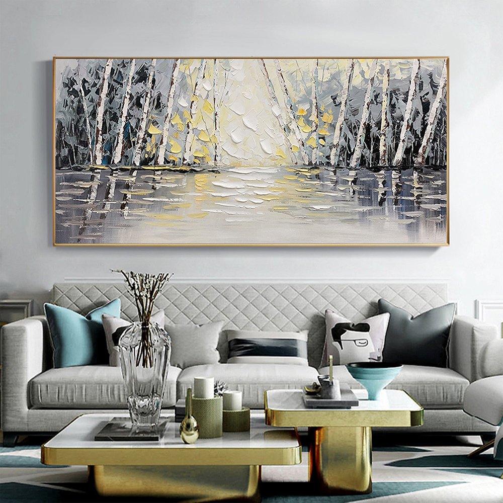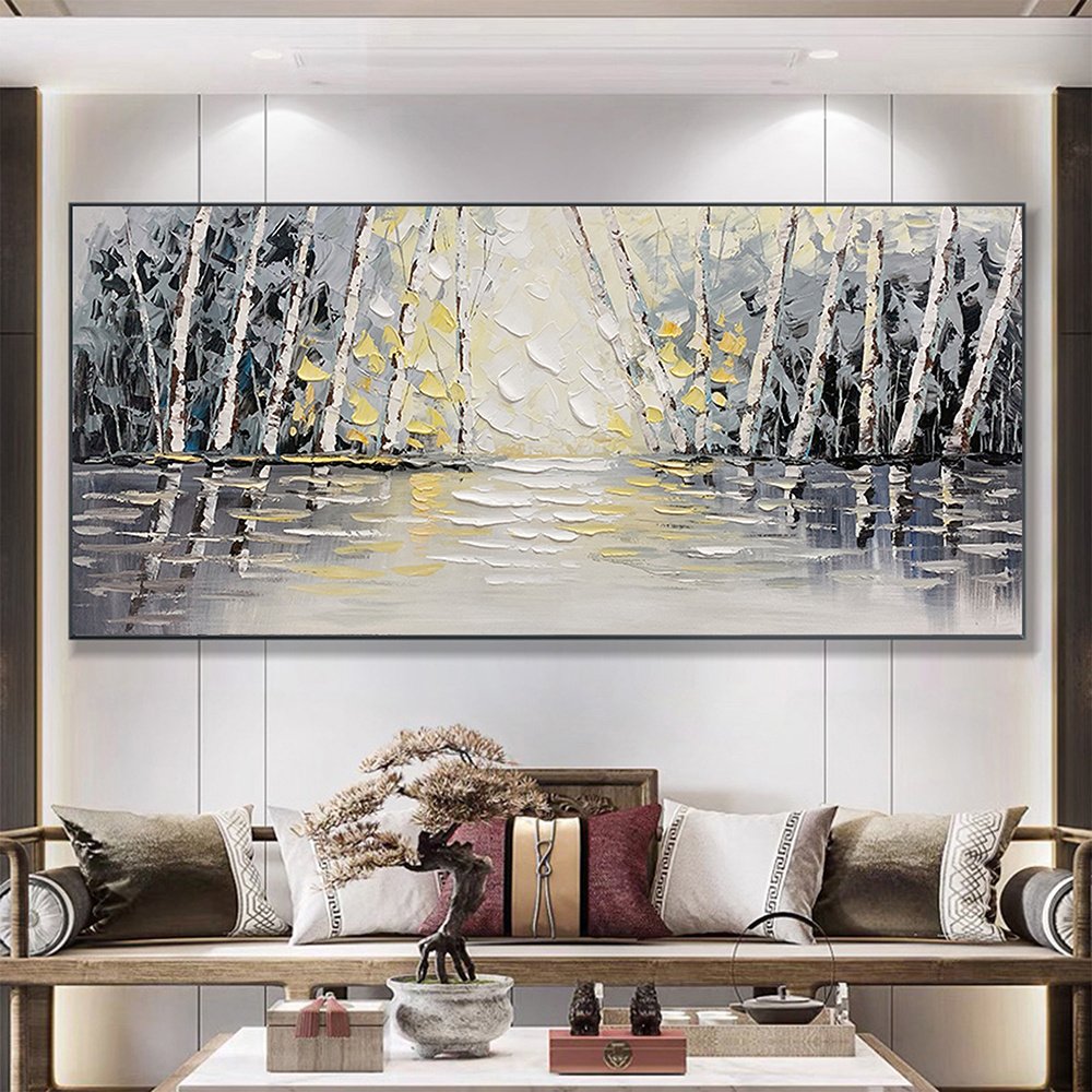 Hand Painted Oil Painting Forest Oil Painting on Canvas Living room Wall Decor Textured Wall Art Abstract Landscape Art Modern Nature Painting Custom