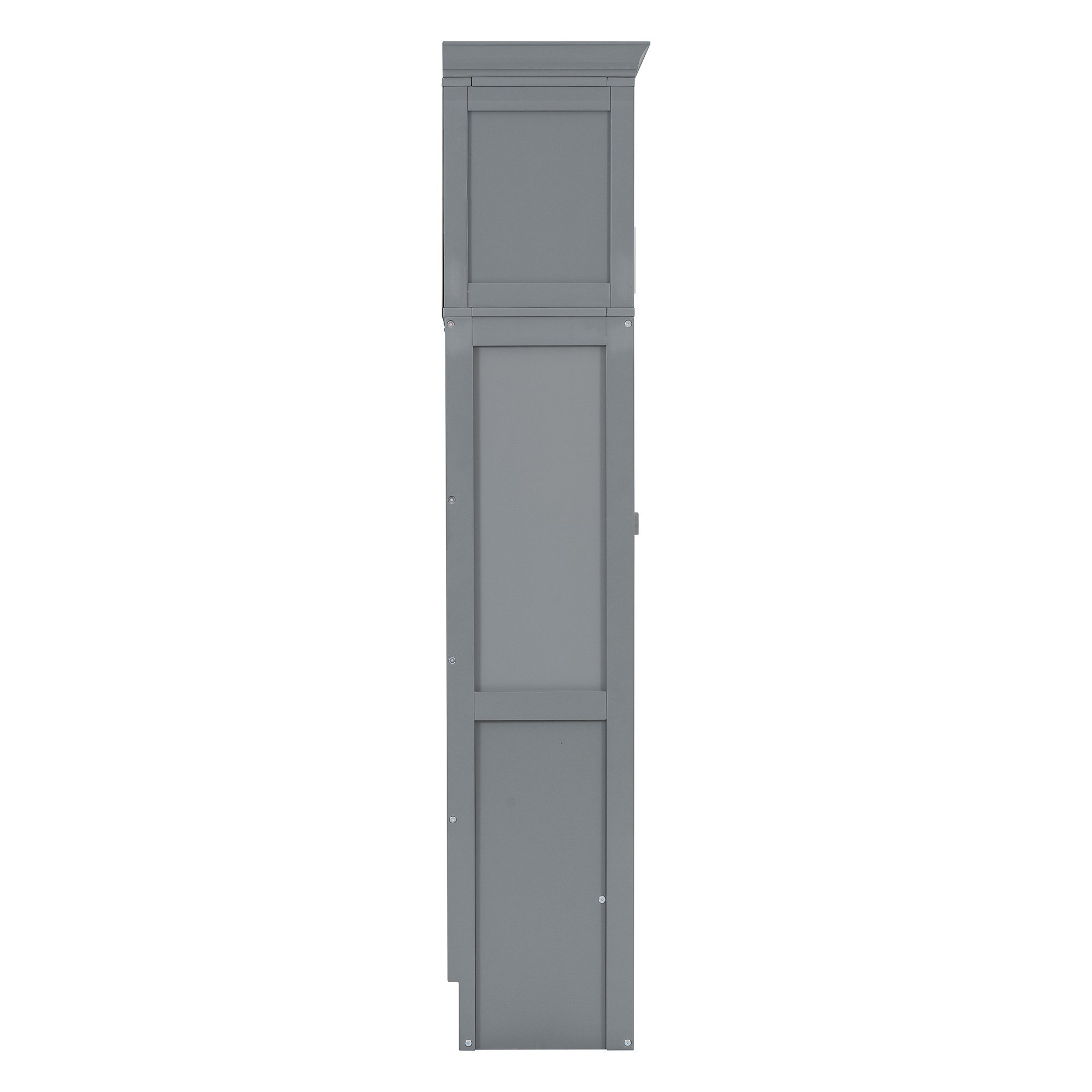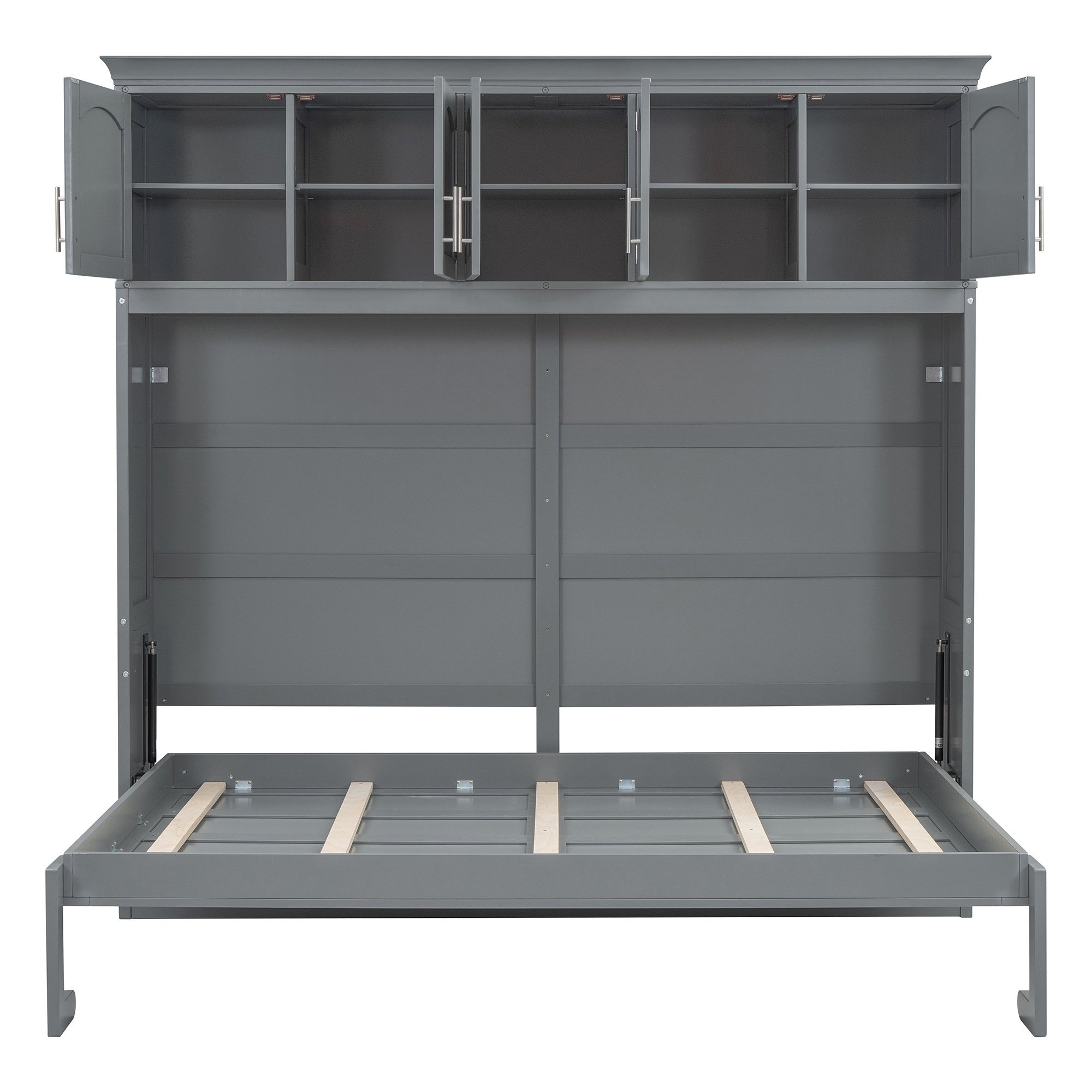 Queen Size Murphy Bed Wall Bed with Top Cabinets,Gray