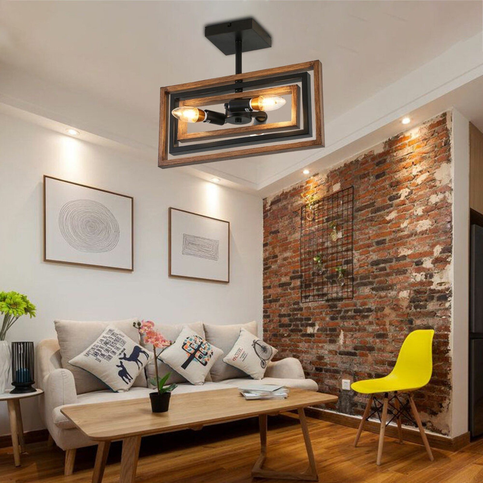 [Wide Application] Made of brown and black adjustable iron framework that perfectly combines retro style and modern industrial style. Perfect for Living Room, Bedroom, Kitchen, Dining Room, restaurants, Hallway, Entryway, Passageway, Corridor, Balcony, Porch, Loft, warehouse,