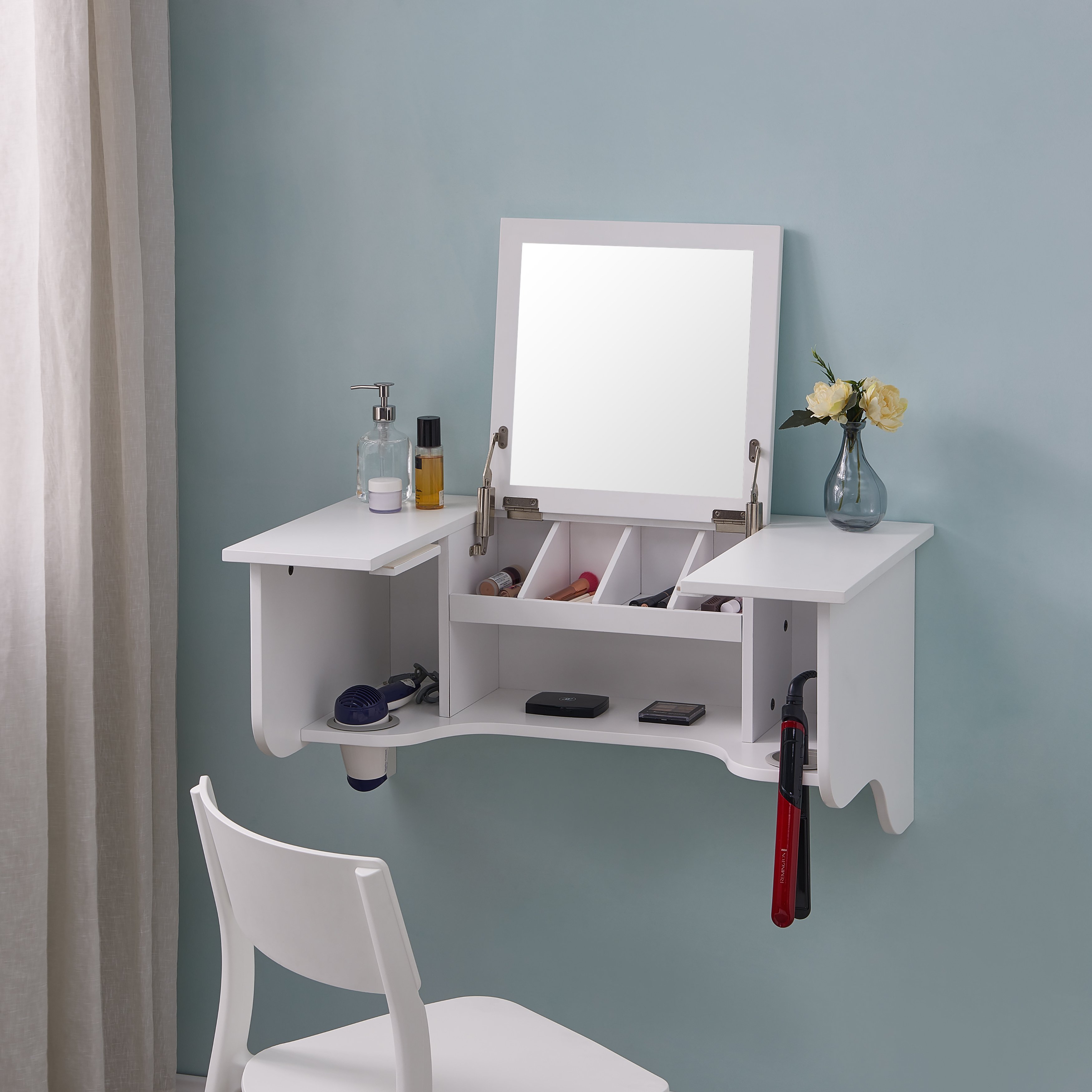 The smooth white finish, fold down mirror, and sturdy wall mount system make this a perfect addition to your dressing area or bathroom